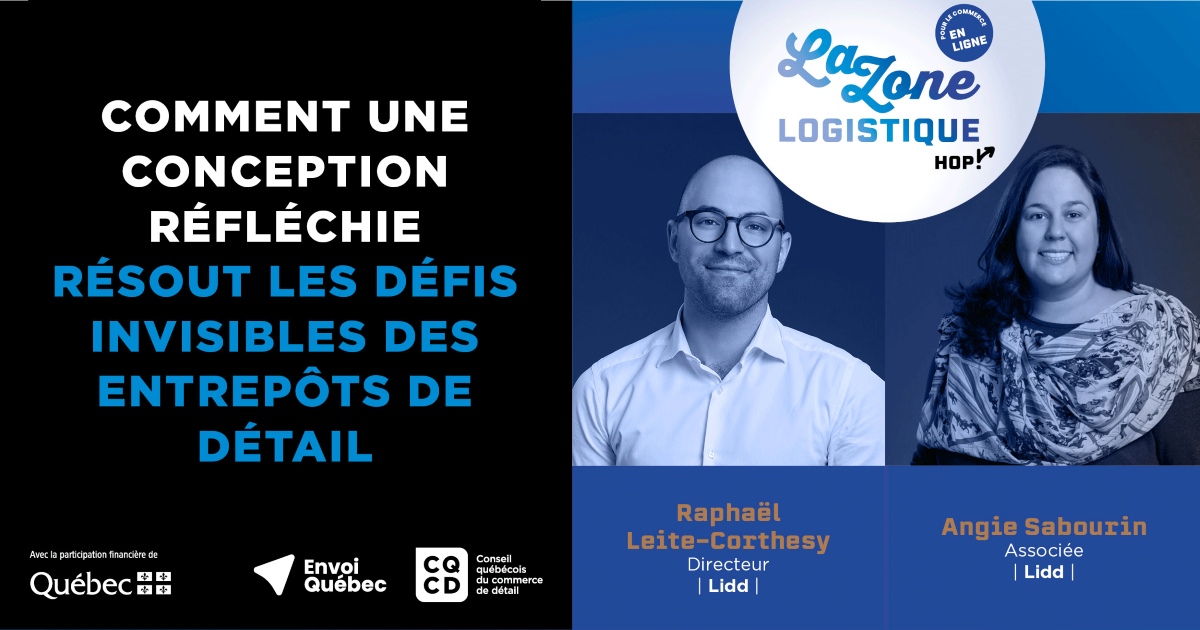Dans cette séance, Angelika Sabourin et Raphaël Leite-Corthesy partageront des exemples concrets de conception réfléchie permettant de révéler des inefficacités cachées, d’améliorer la productivité et de soutenir la croissance omnicanale. En s’appuyant sur des projets récents dans le domaine de la vente au détail, ils montreront comment une planification du plan d’aménagement et une conception de processus réfléchis engendrent de meilleures performances et une meilleure expérience client.