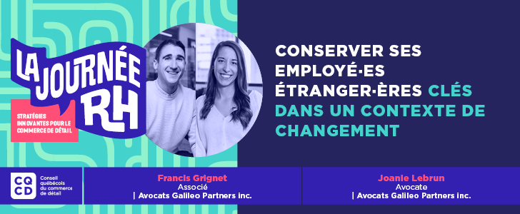 Dans un contexte marqué par d’importants changements réglementaires et administratifs en matière d’immigration, cette conférence portera sur les enjeux liés à la rétention des travailleurs étrangers clés. Les conférenciers aborderont les questions les plus fréquemment soulevées par les employeurs quant à l’embauche et au maintien en emploi de travailleurs étrangers, tout en faisant le point sur les développements récents et les meilleures pratiques en matière de conformité par rapport aux obligations de l’employeur en immigration.