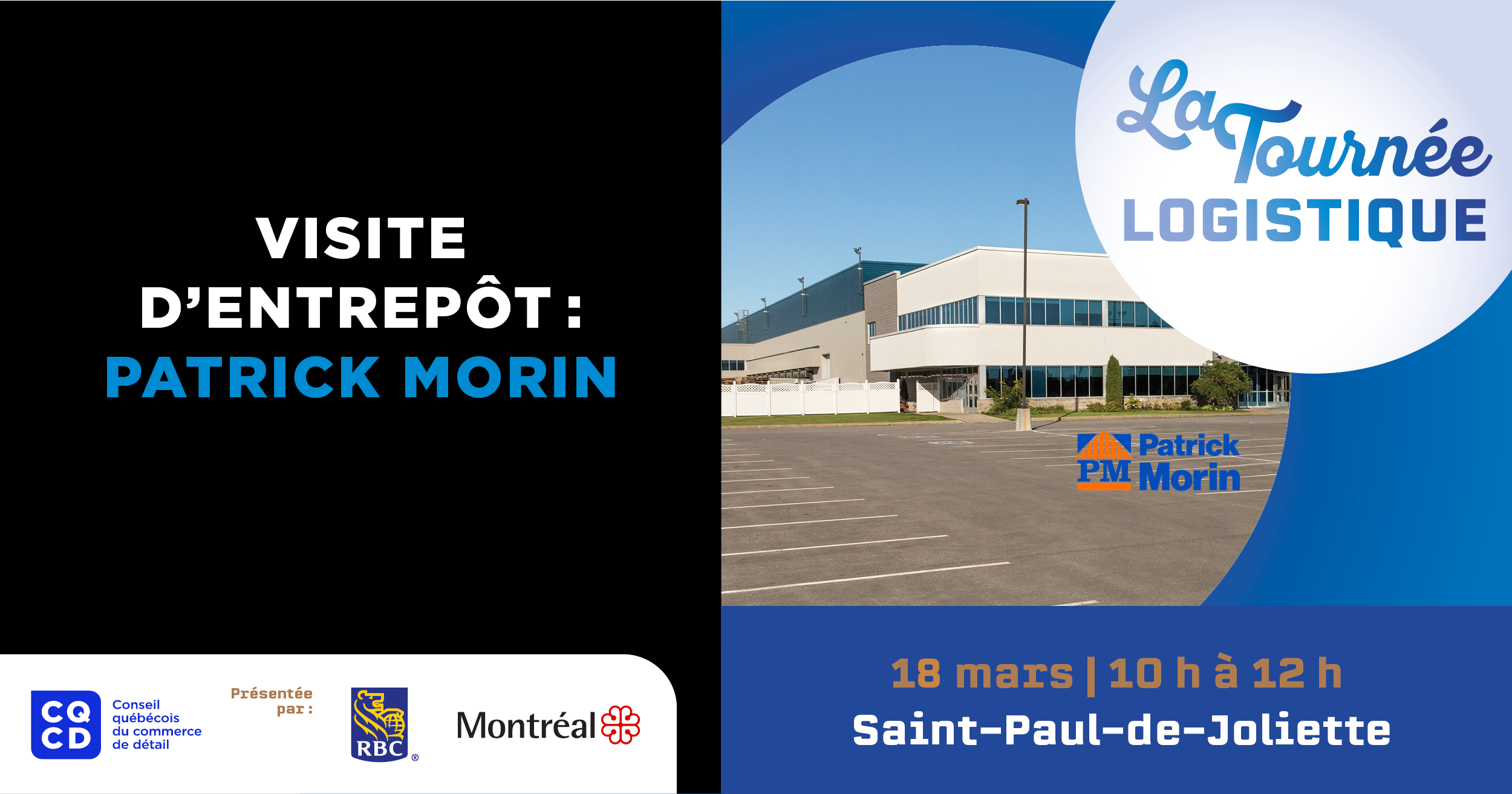 La Tournée logistique du CQCD, présentée par la Ville de Montréal et la Banque Royale (RBC), se poursuit et la prochaine escale aura lieu le 18 mars au centre de distribution de Patrick Morin, à Saint-Paul-de-Joliette. Le grand détaillant québécois propose une gamme de plus de 40 000 produits de quincaillerie, rénovation, décoration et matériaux de construction. Joignez-vous à cette visite exclusive pour découvrir les innovations logistiques qui propulsent cette entreprise locale!